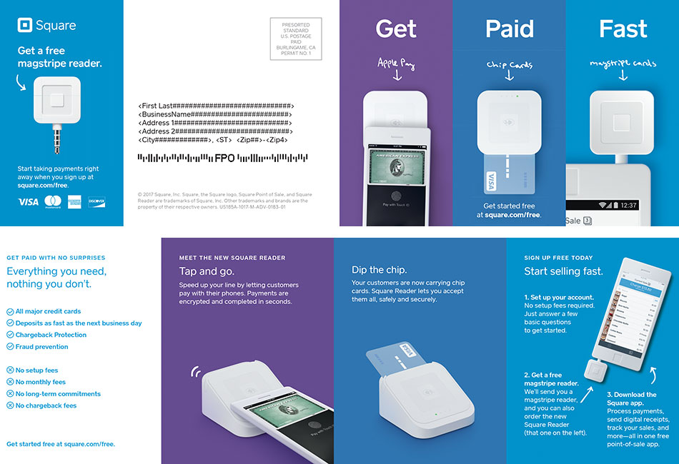 | Direct Mail Direct mail at Square was always extremely data-driven. We applied this new art direction to our tested value propositions and created a piece so successful, it beat out all other challengers for the next two years. People just want to know that they can get paid fast. |
