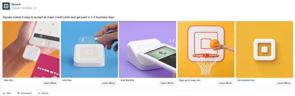 | Social This look and feel was also just right for a social environment. We produced static and carousel posts for Facebook, and cut short video gags for Vine. It was a thing back then—stories didn't exist yet. In this example below, the first four tiles were all gifs, so we could see the swipe, dip, tap, and the super easy slam dunk in action. |